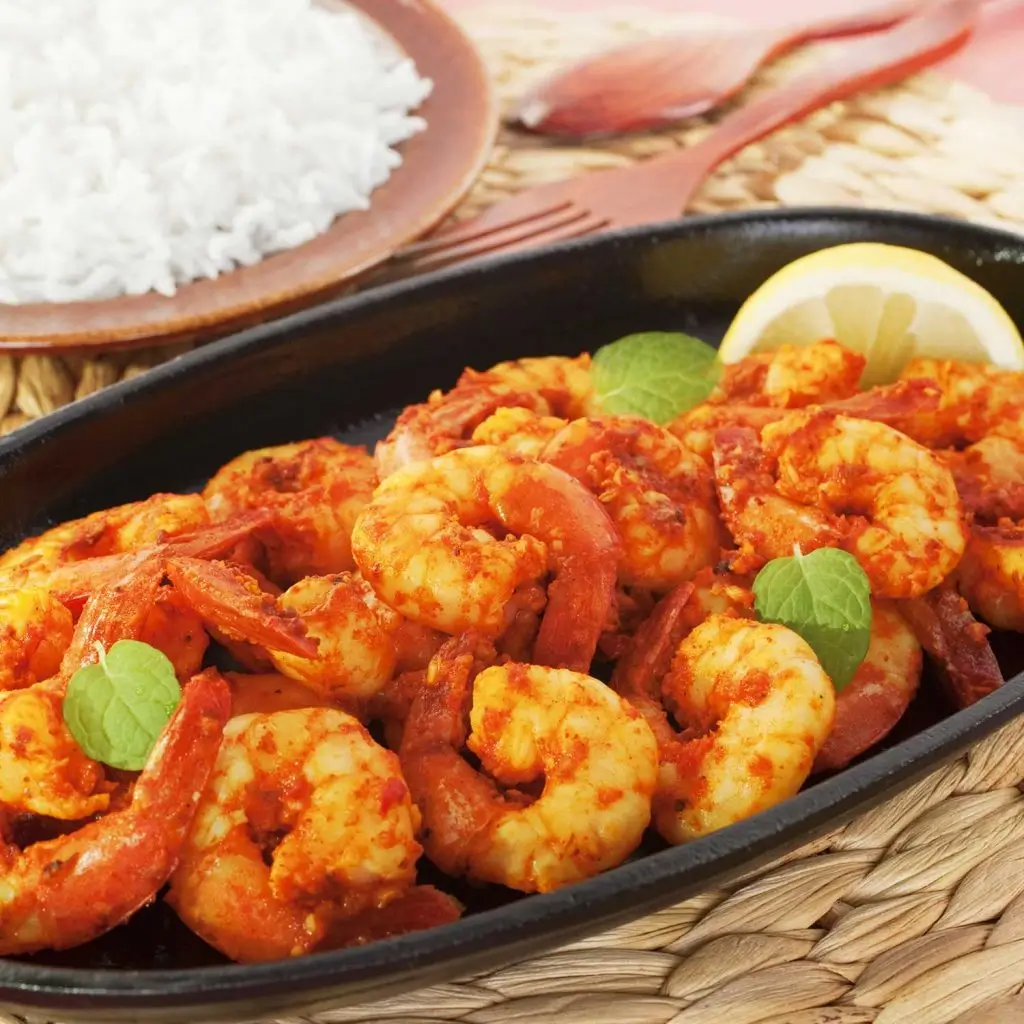 Next, add the fried prawn and wait until cooked. Garnish with sliced onions and curry leaves. Arun Prawn Masala is ready to serve.
